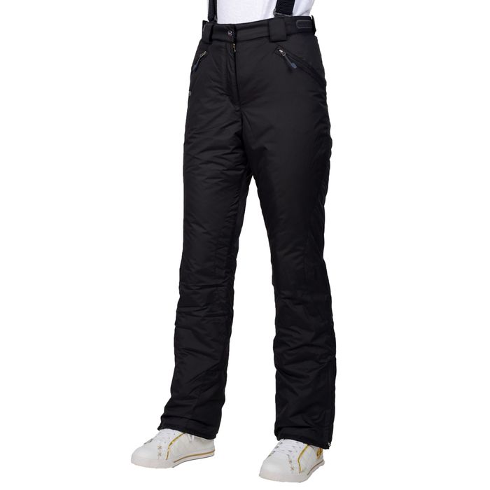 Низ брюк дополнительно усилен тканью, имеет молнии для регулировки ширины и внутренние снегозащитные манжеты.