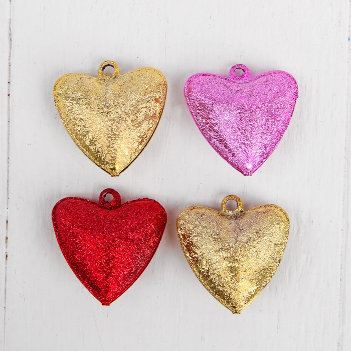 Бубенчик "Сердце", набор 4 шт, размер 1 шт 1,2*3,5*3,6 см, цвета МИКС