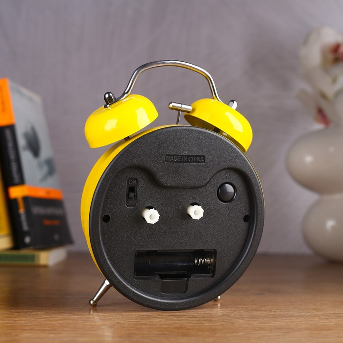 Будильник d=11,5см, желтый, на циферблате Мордашка. Шкода, с подсветкой, микс