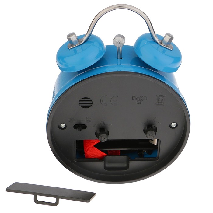 Будильник d=7см, Классика, циф-т белый, металл, 1АА бат., синий, 9*13см