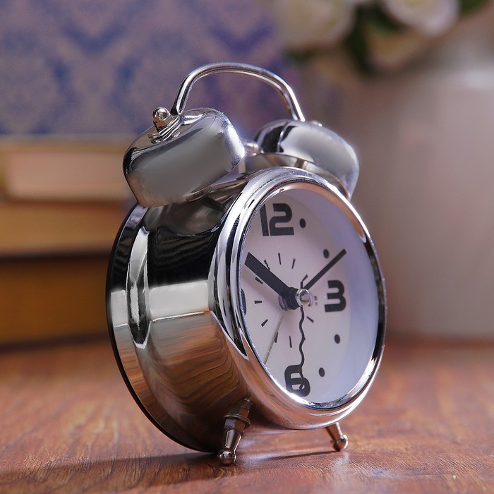 Будильник d=8,5см, дискретный ход, металл, 1 АА, хромированный, 5х8х12 см