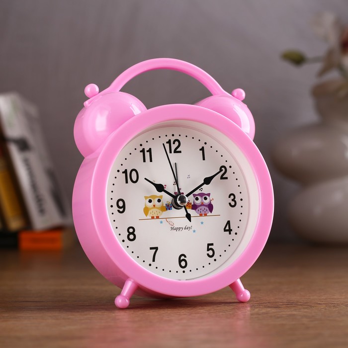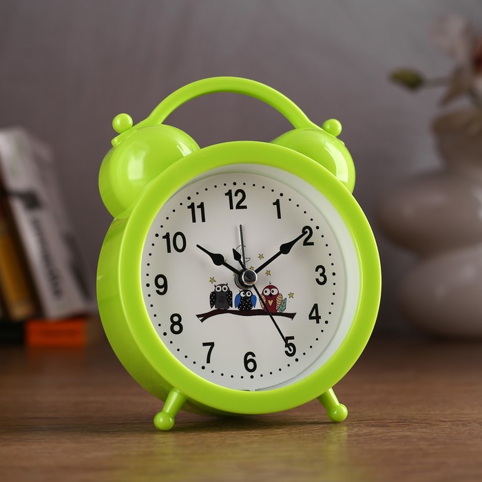 Будильник круг, на циферблате Совушки, пластик, микс, 11*14,5см