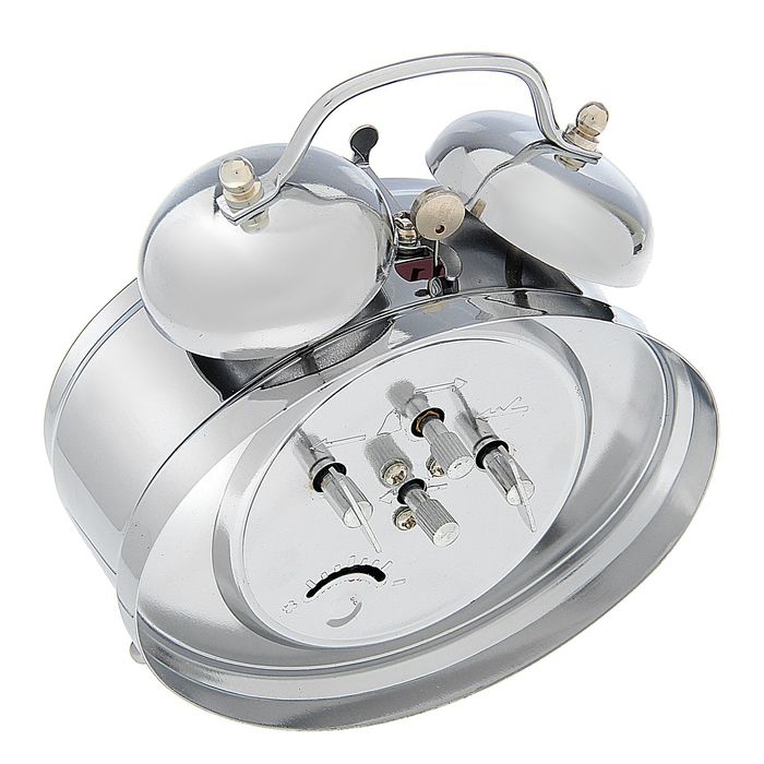 Будильник механический овал, хром, белый циферблат, 2 звоночка 12,5*14см