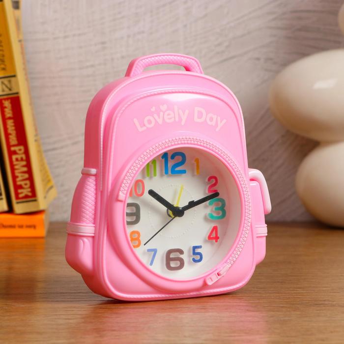 Будильник "Портфель первоклассника", арабские цифры, микс цветов, 14*15 см