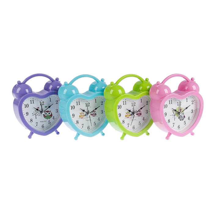 Будильник сердце, на циферблате Совушки, пластик, микс, 11*14,5см