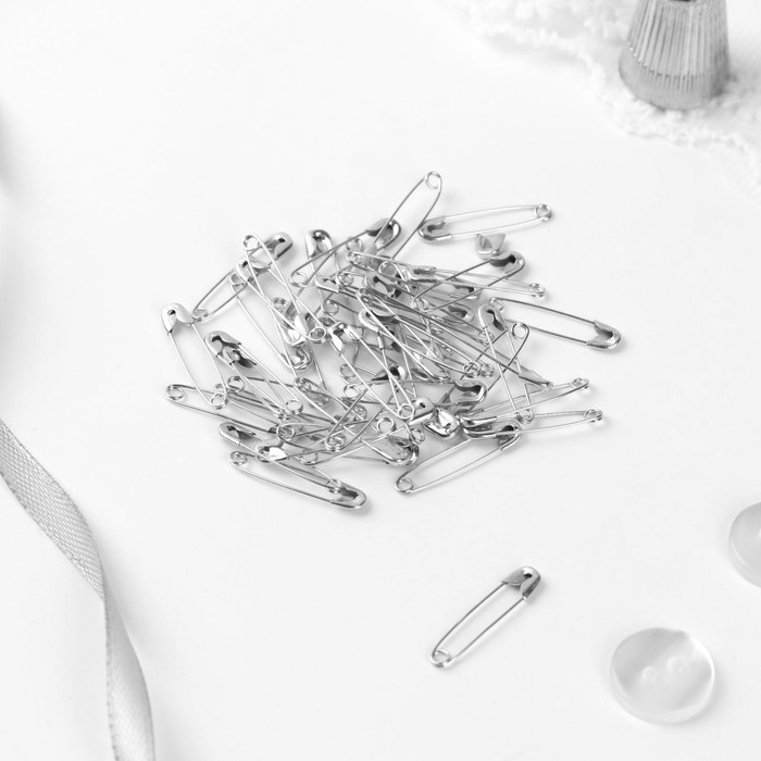 Булавка английская, №00, 20мм, 50 шт, цвет серебристый