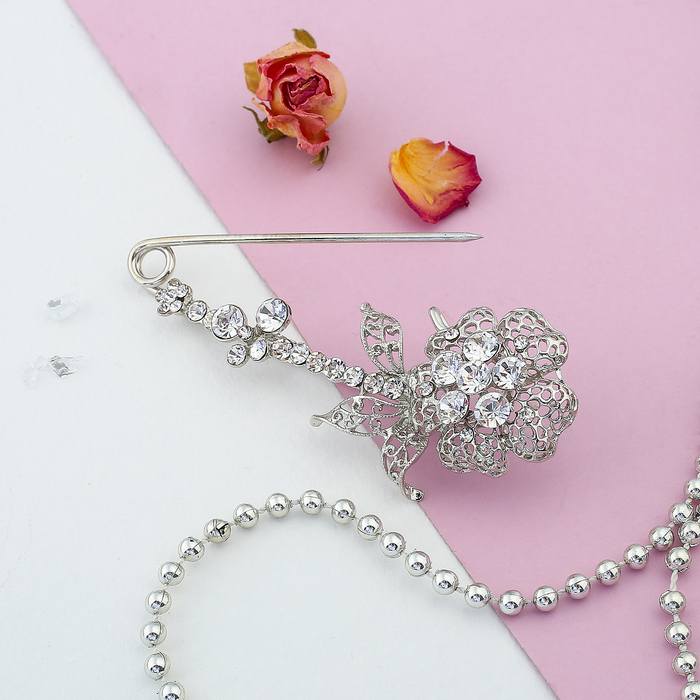 Ни один стиляга не будет выглядеть современно без искусно подобранных украшений, которые завершат его образ! Бижутерия — это современная недорогая альтернатива изделиям из золота и прочих драгоценных металлов. Булавка "Цветок" ажурная композиция, 8 см, цвет белый в серебре — это то, что добавит вам шарма!