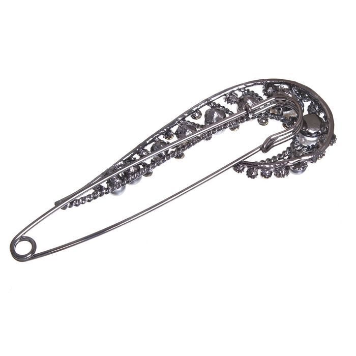Ни один стиляга не будет выглядеть современно без искусно подобранных украшений, которые завершат его образ! Бижутерия — это современная недорогая альтернатива изделиям из золота и прочих драгоценных металлов. Булавка "Крючок" с жемчугом, 10,5 см, цветная в черненом серебре — это то, что добавит вам шарма!