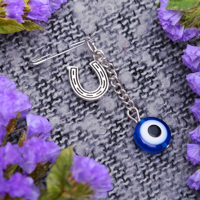 Ни один стиляга не будет выглядеть современно без искусно подобранных украшений, которые завершат его образ! Бижутерия — это современная недорогая альтернатива изделиям из золота и прочих драгоценных металлов. Булавка-оберег "Глазик" с подковой, 2,5 см, цвет синий в серебре — это то, что добавит вам шарма!