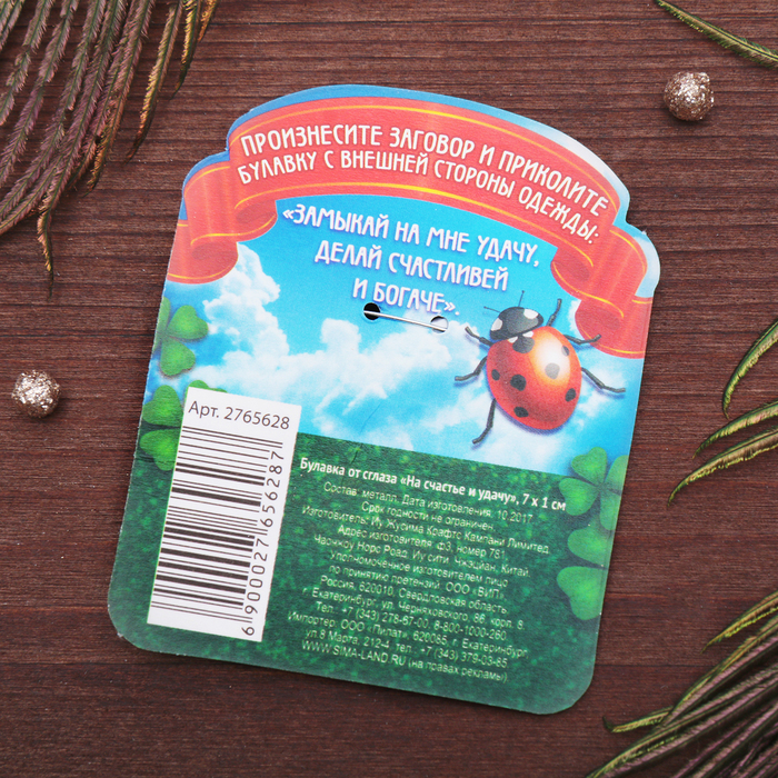 Булавка от сглаза "На счастье и удачу", 1 х 7 см