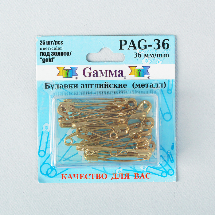 Булавки английские, 36мм, PAG-36, 25шт, цвет золотистый