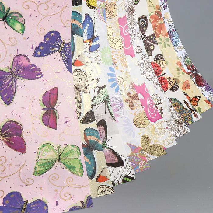Бумага 1-сторонняя с золотым тиснением "Бабочки"набор 50 листов пл-сть 80 гр 49,5х34,5 см