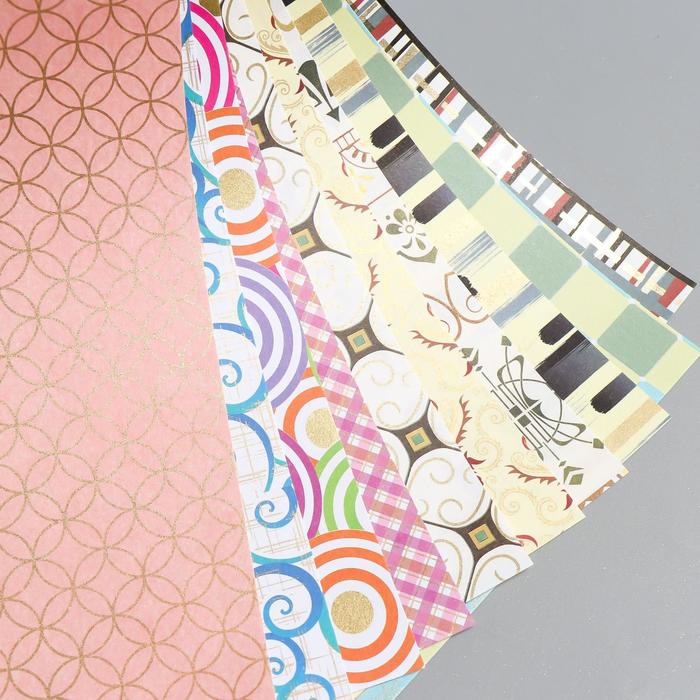 Бумага 1-сторонняя с золотым тиснением "Геометрия"набор 50 лист.,пл-сть 80 гр 24,5х17,3 см
