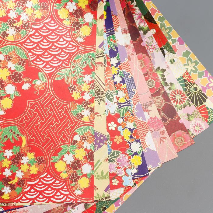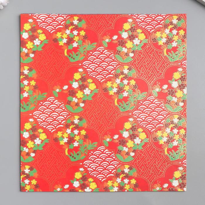 Бумага 1-сторонняя с золотым тиснением "Полянка"набор 50 лист., пл-сть 80 гр 24,5х23 см