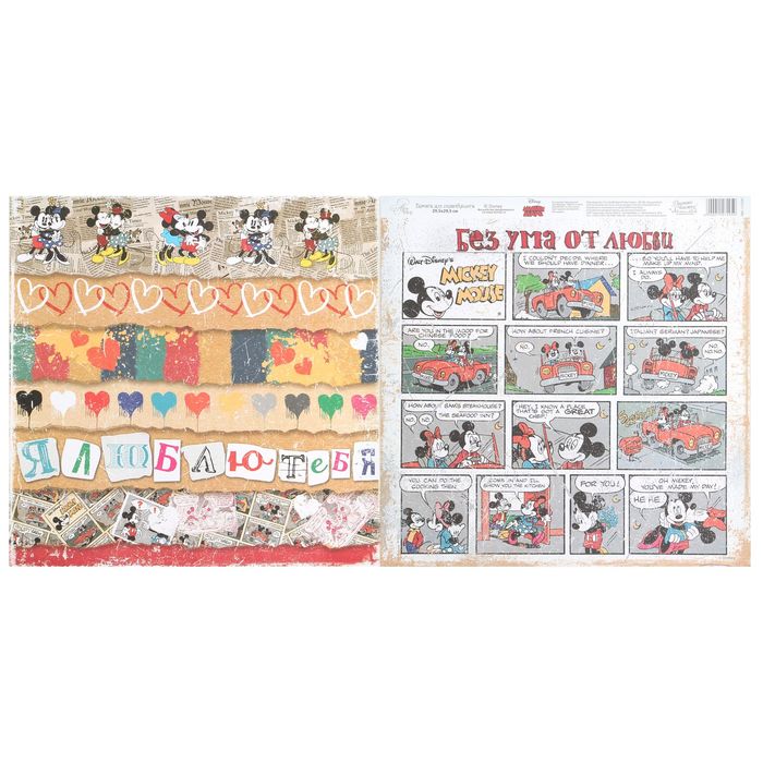 Бумага для скрапбукинга "Crazy in love: Я люблю тебя", Микки и Минни, 29.5 х 29.5 см, 160 г/м²