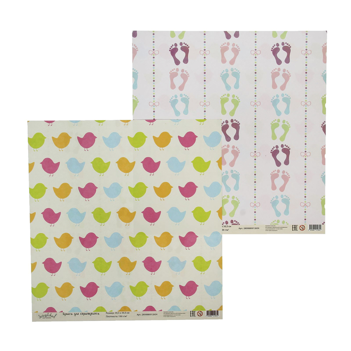Бумага для скрапбукинга "Детство. Птички и следы" 30,5х30,5 см 190г/м2