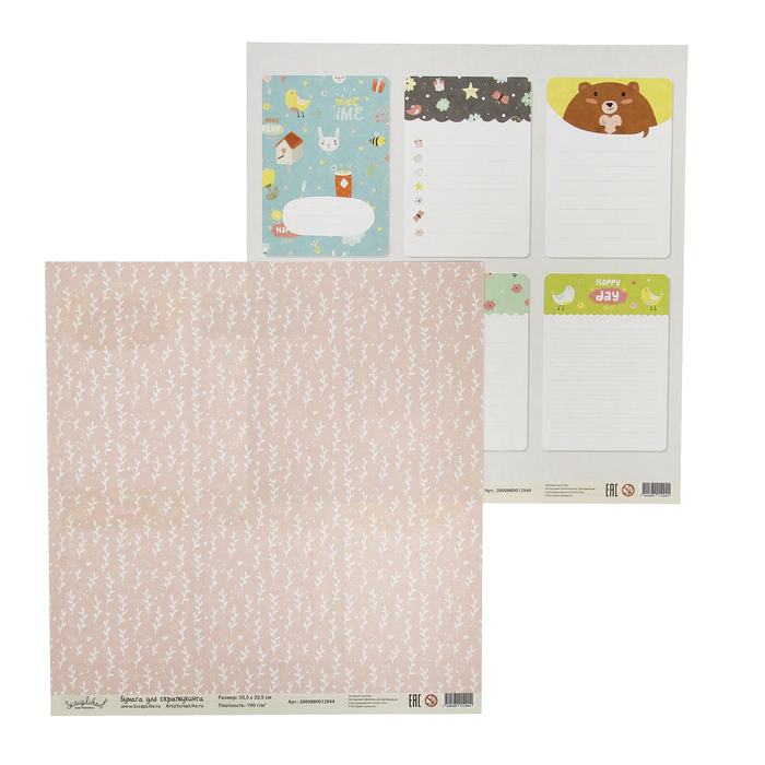 Бумага для скрапбукинга "Детство. Веточки и листочки блокнота" 30,5х30,5 см 190г/м2