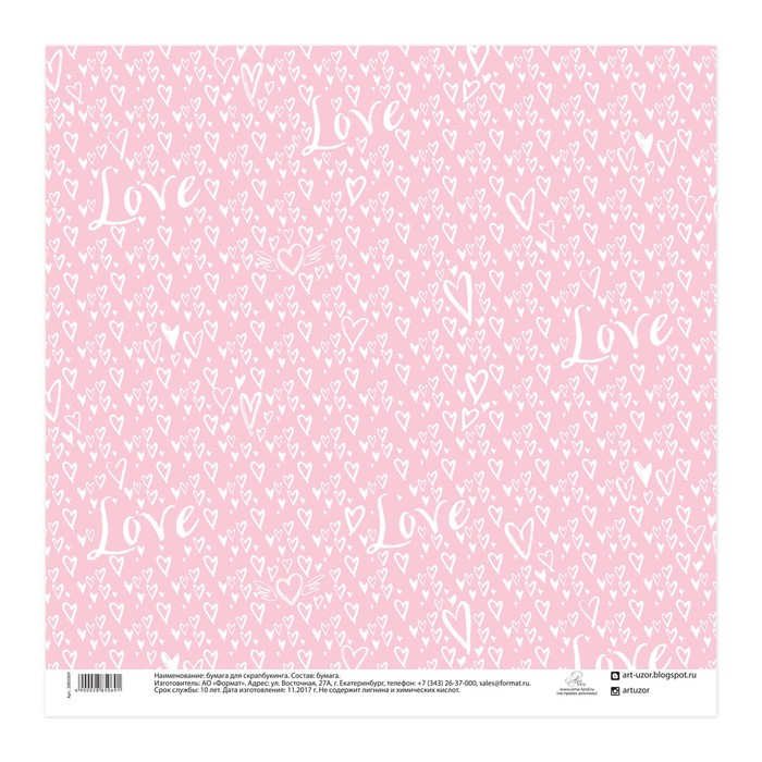 Бумага для скрапбукинга "Для тебя с любовью", 30,5 х 30,5 см 180 г/м