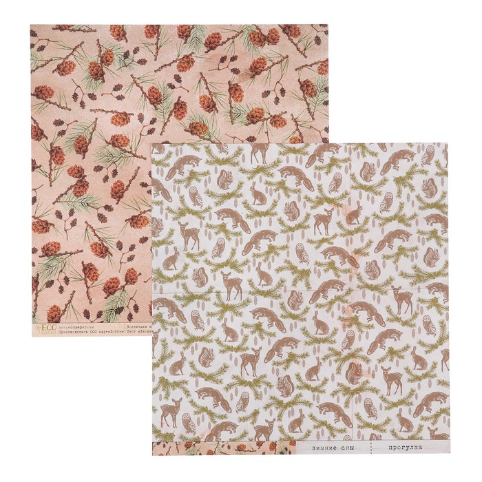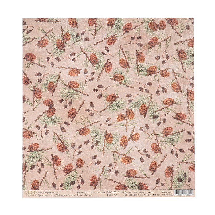 Бумага для скрапбукинга "Хвоя "Зимние сны" 30.5х30.5 см, 250 гр/м2