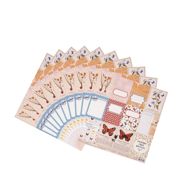 Бумага для скрапбукинга "Карточки "Атлас бабочек" 30,5х30,5 см, 250 гр/м2