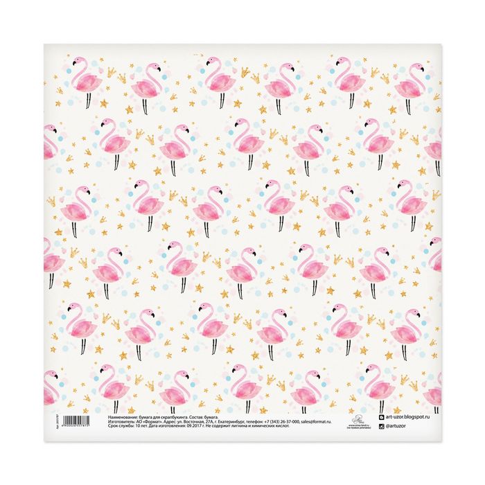 Бумага для скрапбукинга "Королевский фламинго", 30.5х30.5 см