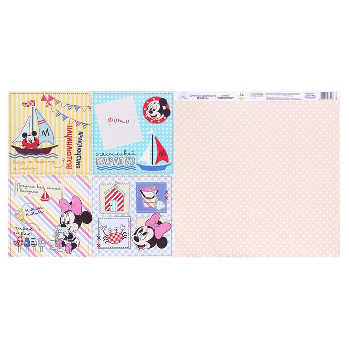 Бумага для скрапбукинга "Летние денечки: Счастливый карапуз", Микки Маус и друзья, 29.5 х 29.5 см, 180 г/м²