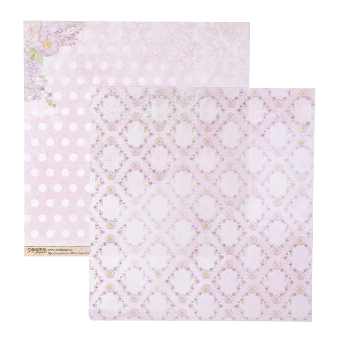 Бумага для скрапбукинга "Летняя симфония "Цветочная вышивка" 30,5х30,5 см, 190гр/м2