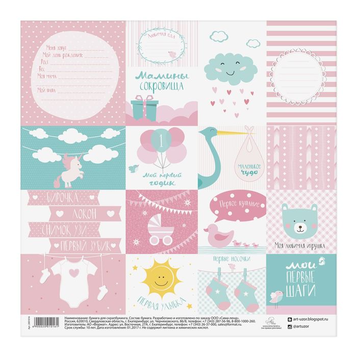 Бумага для скрапбукинга "Маленькое чудо", 30,5 х 30,5 см, 180 г/м