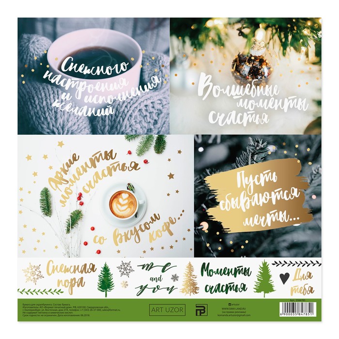 Бумага для скрапбукинга «Моменты счастья», 20 × 21,5 см, 180 г/м