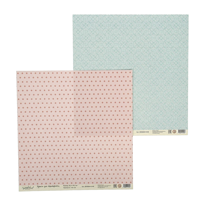 Бумага для скрапбукинга "Нежность. Горошек и винтажный узор" 30,5х30,5 см 190г/м2