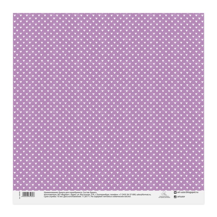 Бумага для скрапбукинга "От всей души", 30,5 х 30,5 см 180 г/м