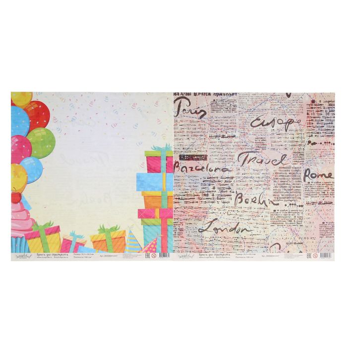 Бумага для скрапбукинга "Семейные ценности. Газеты и шарики" 30,5х30,5 см 190г/м2