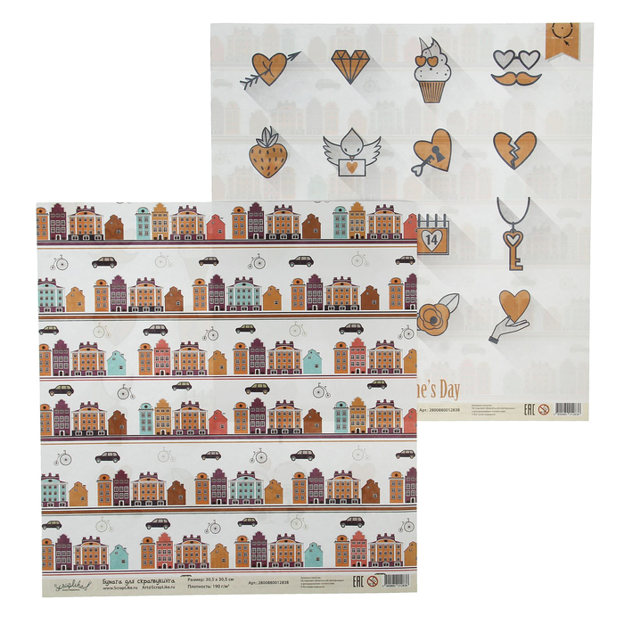 Бумага для скрапбукинга "Семейные ценности. Город. Ключики" 30,5х30,5 см 190г/м2