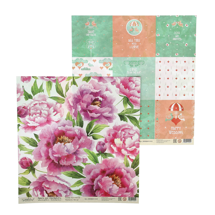 Бумага для скрапбукинга "Свадьба. Розы и календарь" 30,5х30,5 см 190г/м2