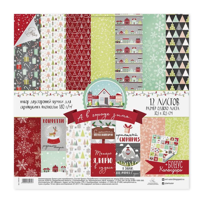 Бумага для скрапбукинга в наборе «А в городе зима», 30,5 × 30,5 см180 гр/м