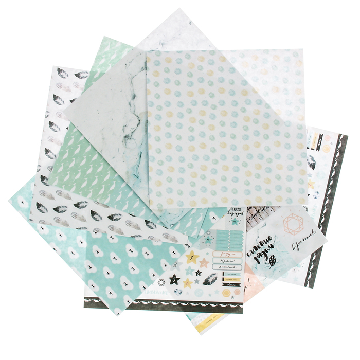 Бумага для скрапбукинга "В облаках №2" (набор 7 листов) 20х20 см