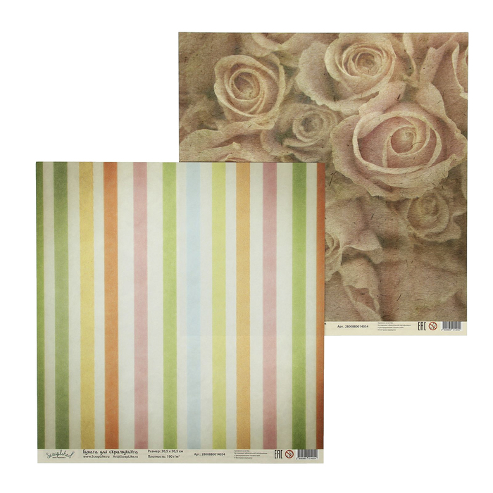 Бумага для скрапбукинга "Винтаж. Розы и цветные полосы" 30,5х30,5 см 190г/м2