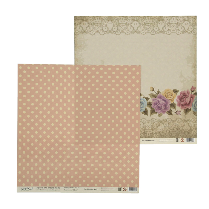 Бумага для скрапбукинга "Воспоминания. Горошек и цветы" 30,5х30,5 см 190г/м2