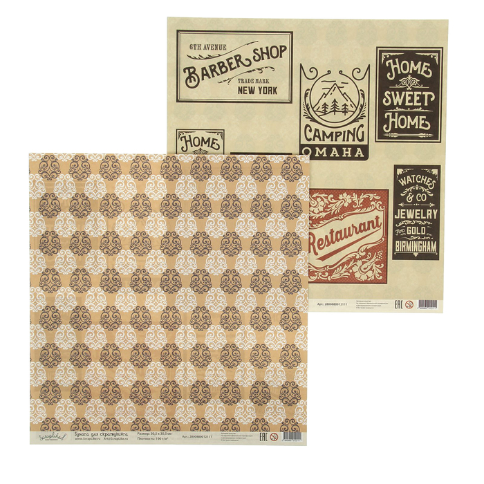 Бумага для скрапбукинга "Воспоминания. Виньетки и вывески" 30,5х30,5 см 190г/м2