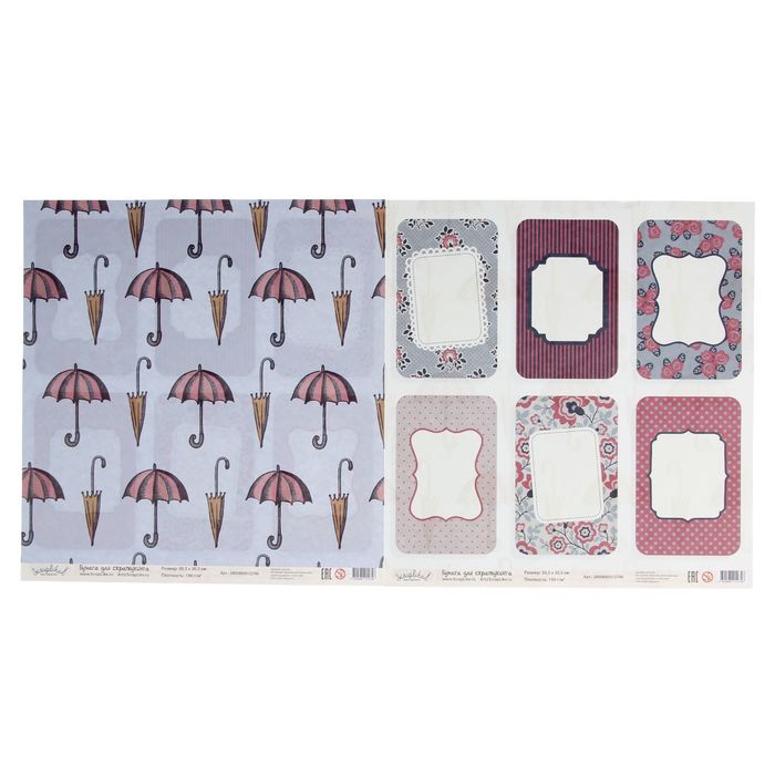 Бумага для скрапбукинга "Воспоминания. Зонтики и рамочки" 30,5х30,5 см 190г/м2