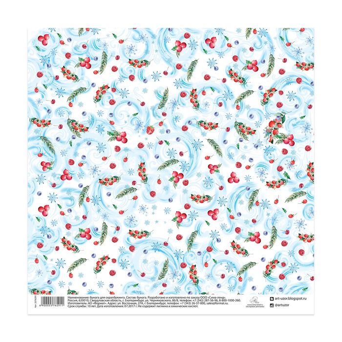 Бумага для скрапбукинга «Зимние ягодки», 30,5 × 30,5 см 180 гр/м