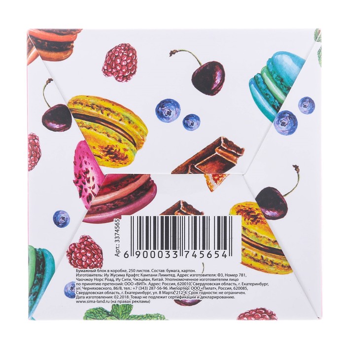 Бумага для записей в коробке "Вкусного много не бывает", 250 листов, размер листа 9 х 9 см