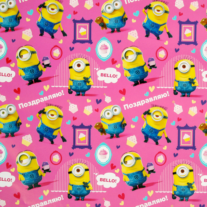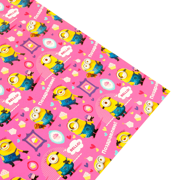 Любой подарок начинается с упаковки. Что может быть трогательнее и волшебнее, чем ритуал разворачивания полученного презента. И именно оригинальная, со вкусом выбранная упаковка выделит ваш подарок из массы других. Она продемонстрирует самые тёплые чувства к виновнику торжества и создаст сказочную атмосферу праздника. Бумага глянцевая "Поздравляю" Гадкий Я, 70х100 см — это то, что вы искали.