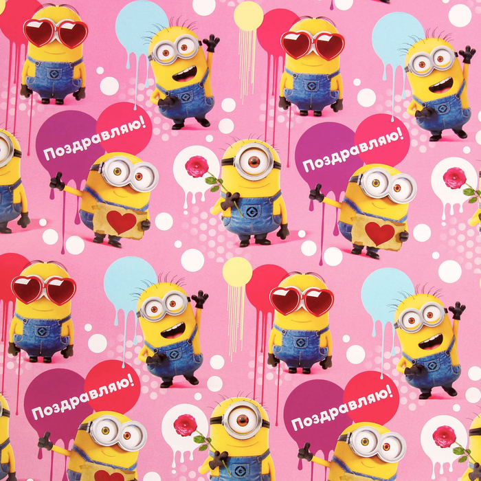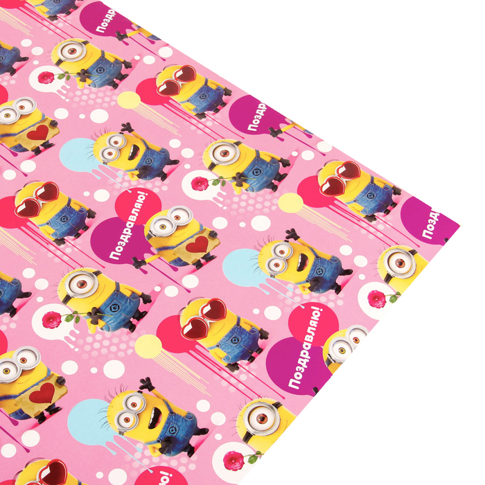 Бумага глянцевая "Поздравляю" Гадкий Я, розовая 70х100 см