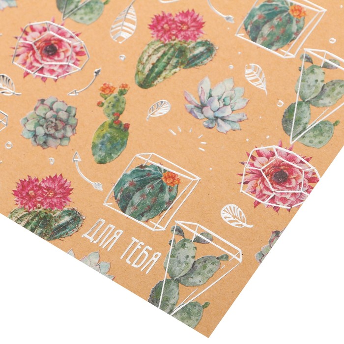 Бумага крафтовая для скрапбукинга с фольгированием «Кактусы», 30,5 х 30,5 см, 300 г/м