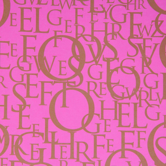 Бумага упаковочная белая, "Letters", малиновый-золотой, 0.7 х 10 м
