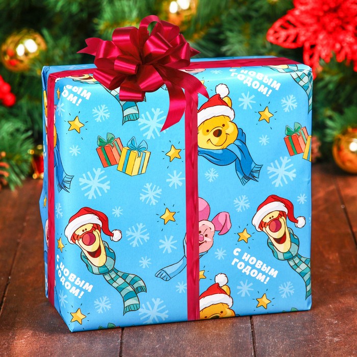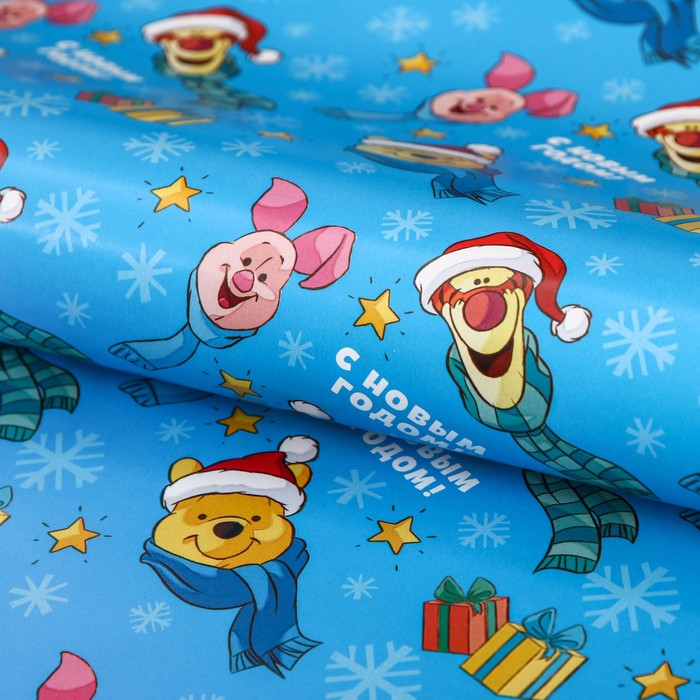 Бумага упаковочная глянцевая "С Новым Годом", Медвежонок Винни и друзья, 70х100 см