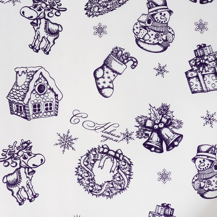 Бумага упаковочная крафт "Новогодняя", фиолетовый, 0,7 х 10 м