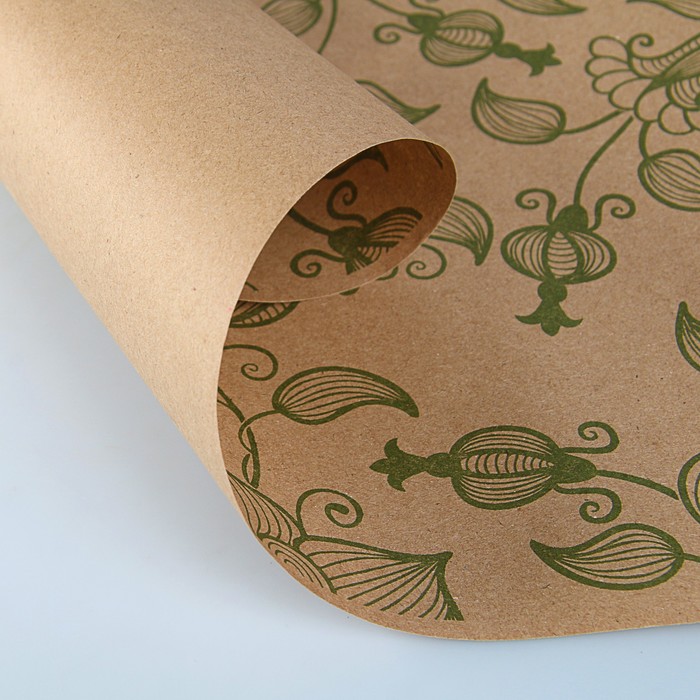 Бумага упаковочная крафт "Вьюнок полевой зелёный", 0,72 х 10 м, 70 г