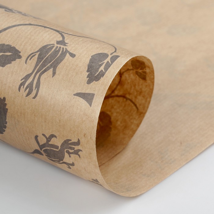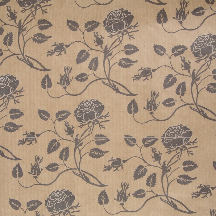 Бумага упаковочная крафт "Вьющиеся розы серые" 0,7 х 10 м, 40 г/м²